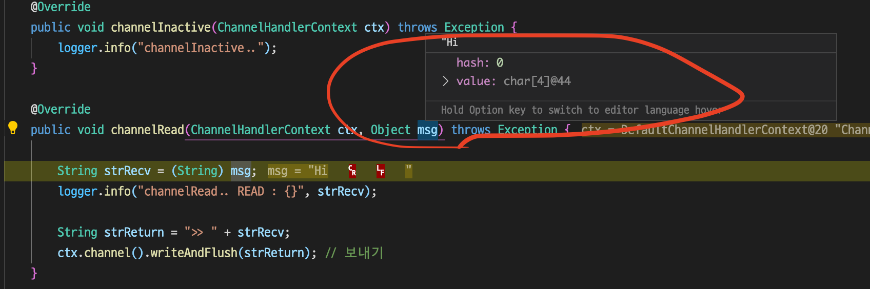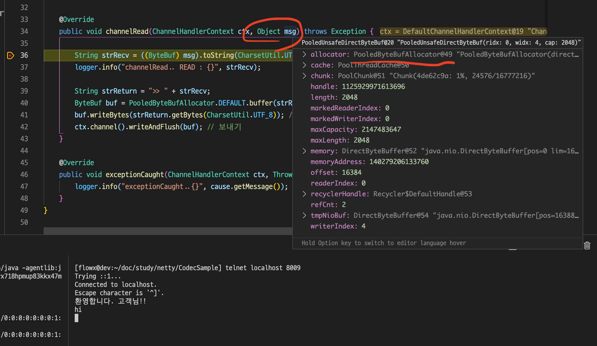 디버깅을 해보면 msg 이놈이 ByteBuf로 온다.