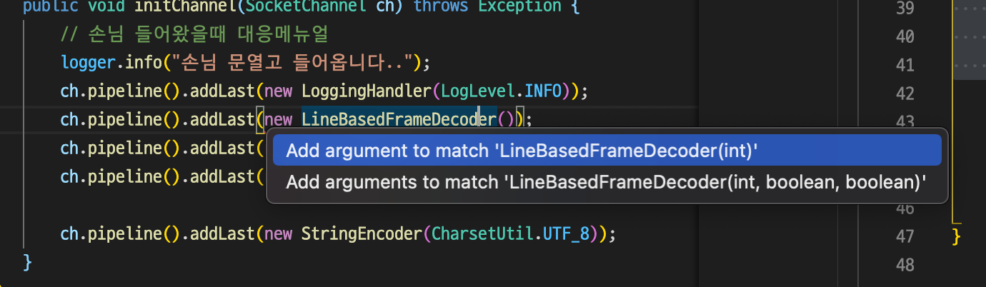 LineBasedFrameDecoder : 라인단위로 가져와서 처리