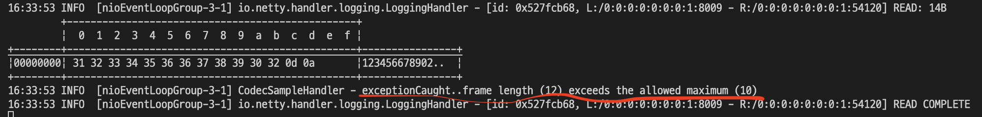 ch.pipeline().addLast(new LineBasedFrameDecoder(10));