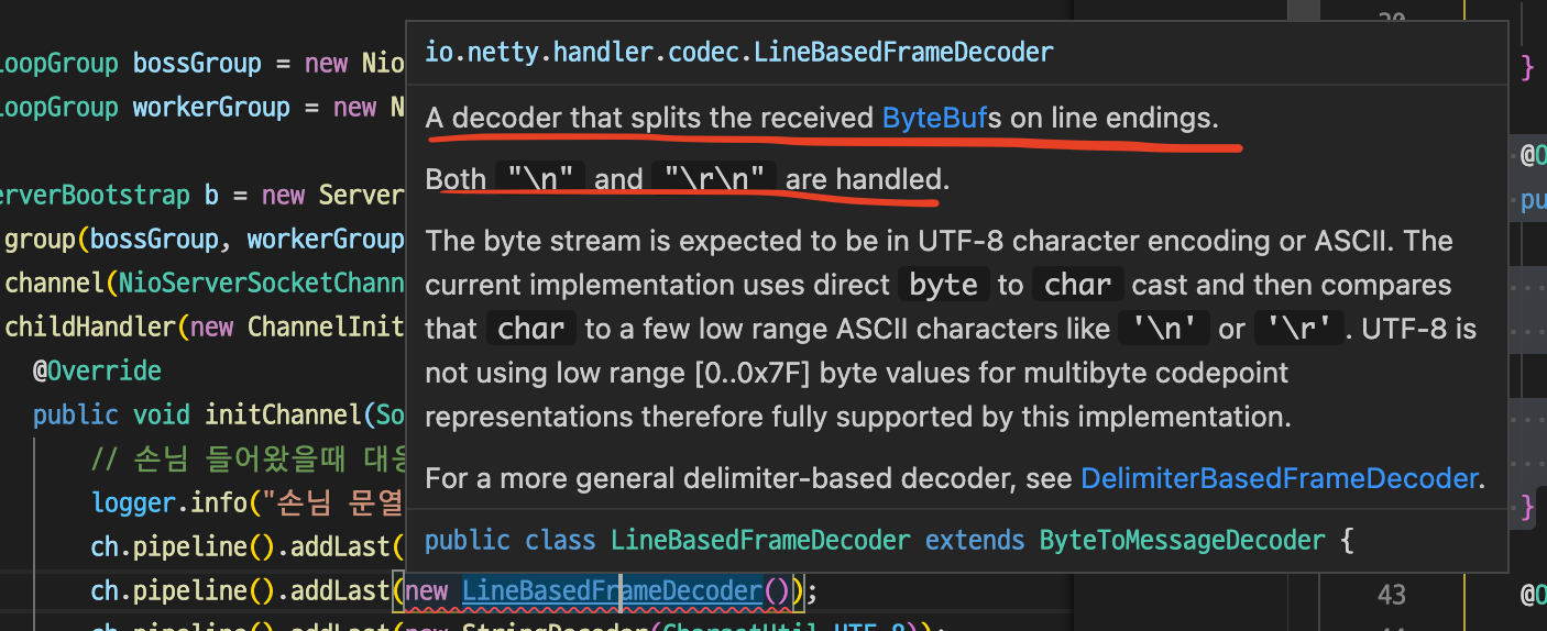 우선 설명을 보면 받은 ByteBuf를 \n, \r\n으로 나눈다고 한다