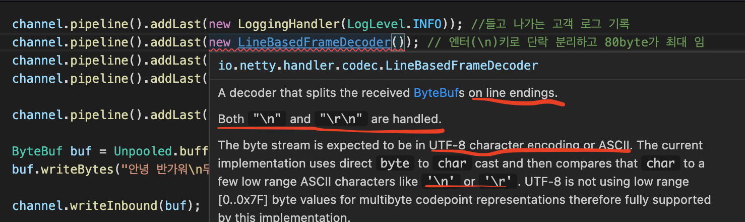 받은 bytebuf 데이터를 line endings , "\n","\r\n" 을 분리해준다고 한다.