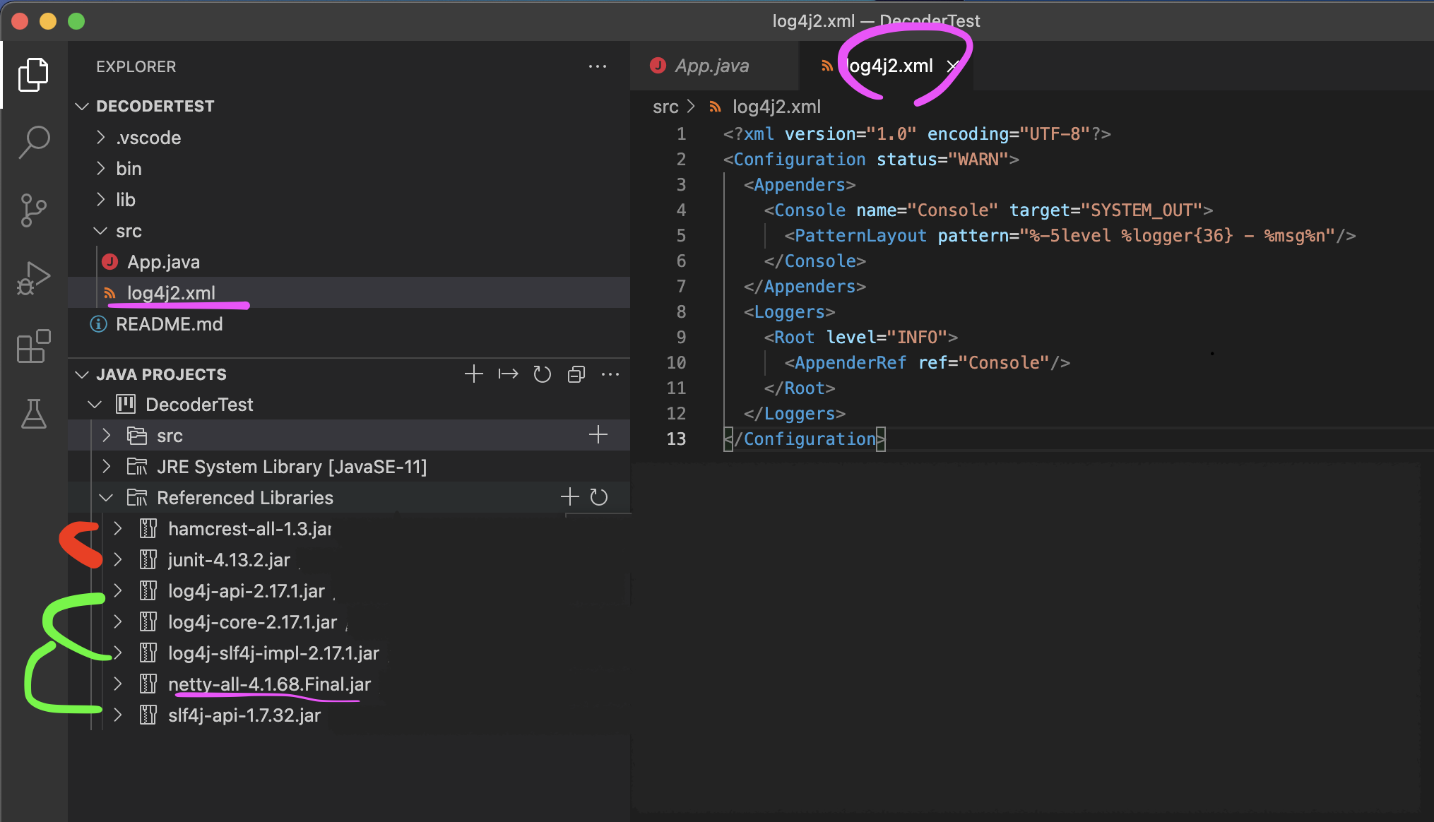 JUnit, Log4J2 with Slf4j(설정파일포함-간단한거 가져옴), Netty를 가져오자