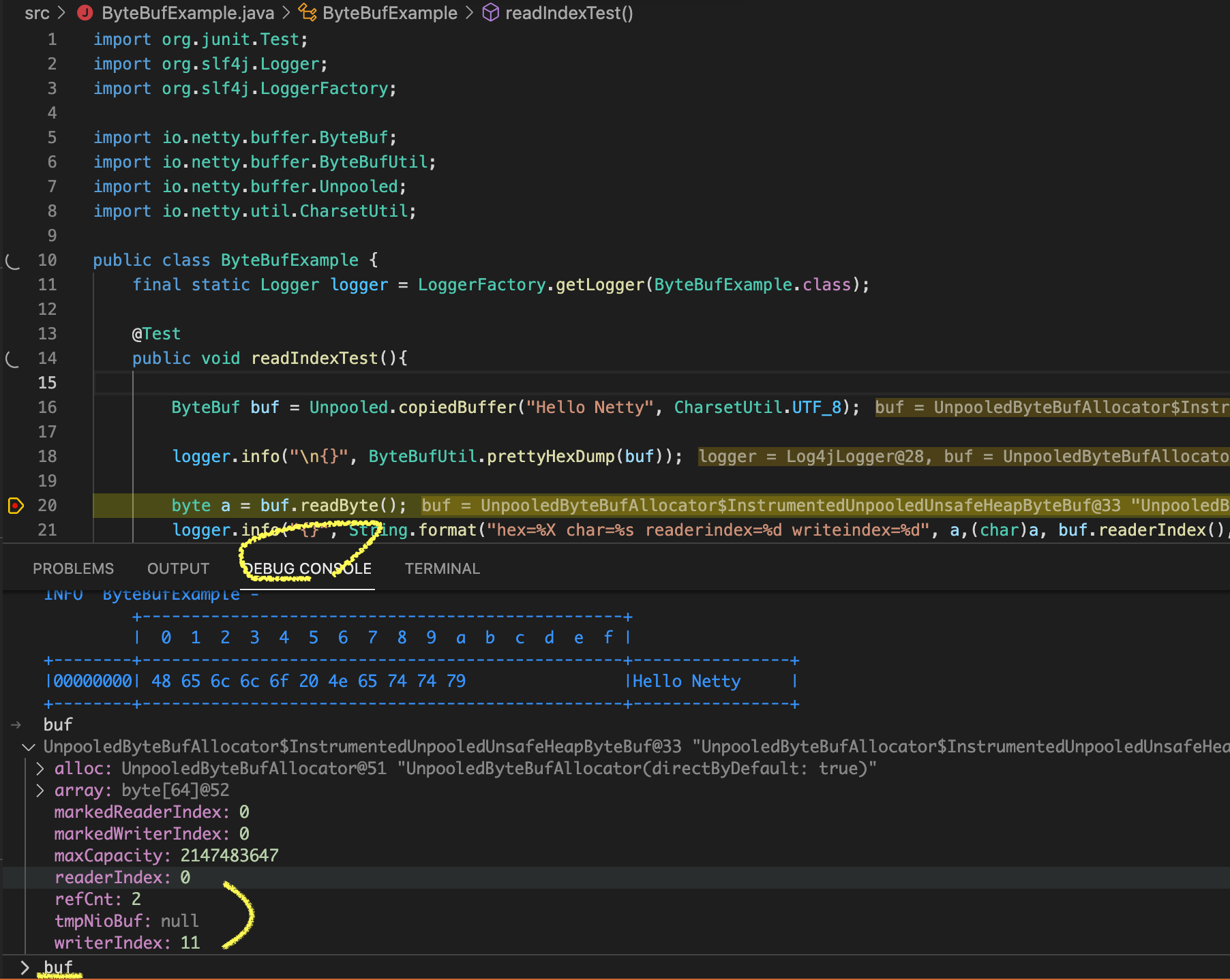 VS Code에서 Test를 디버그로 돌려 ByteBuf의 모습을 보자