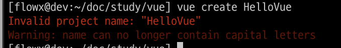 1. vue 설치하고 ( npm, yarn 등으로 설치 ) 첫 create 하면 오류.. 대문자가 포함되면 안된다고 함