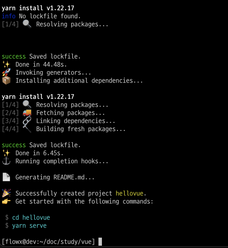 2. vue create hellovue 해서 프로젝트 만들어보자