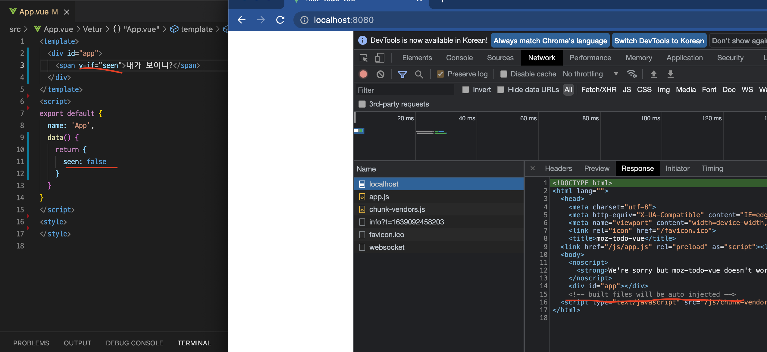 - span에 v-if를 사용하면 Dom 객체에서 사라짐