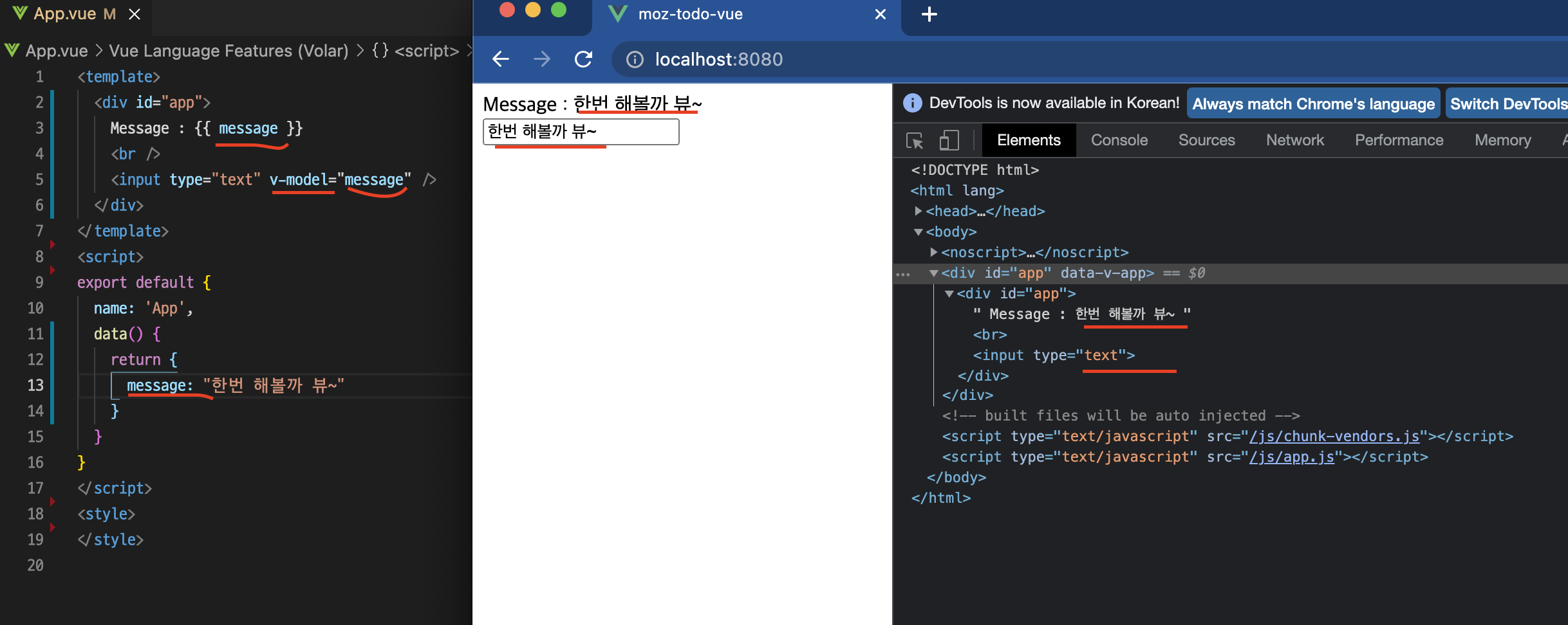 2. object 내 변수전달은 v-model이다 .( 또 다른 방법이 있겠지만 .. 우선)